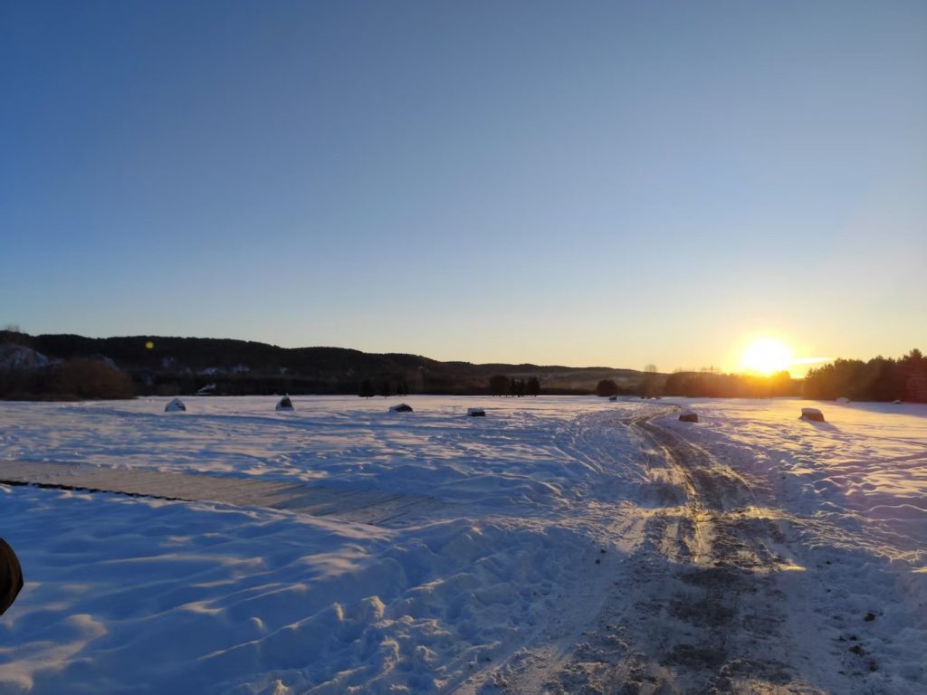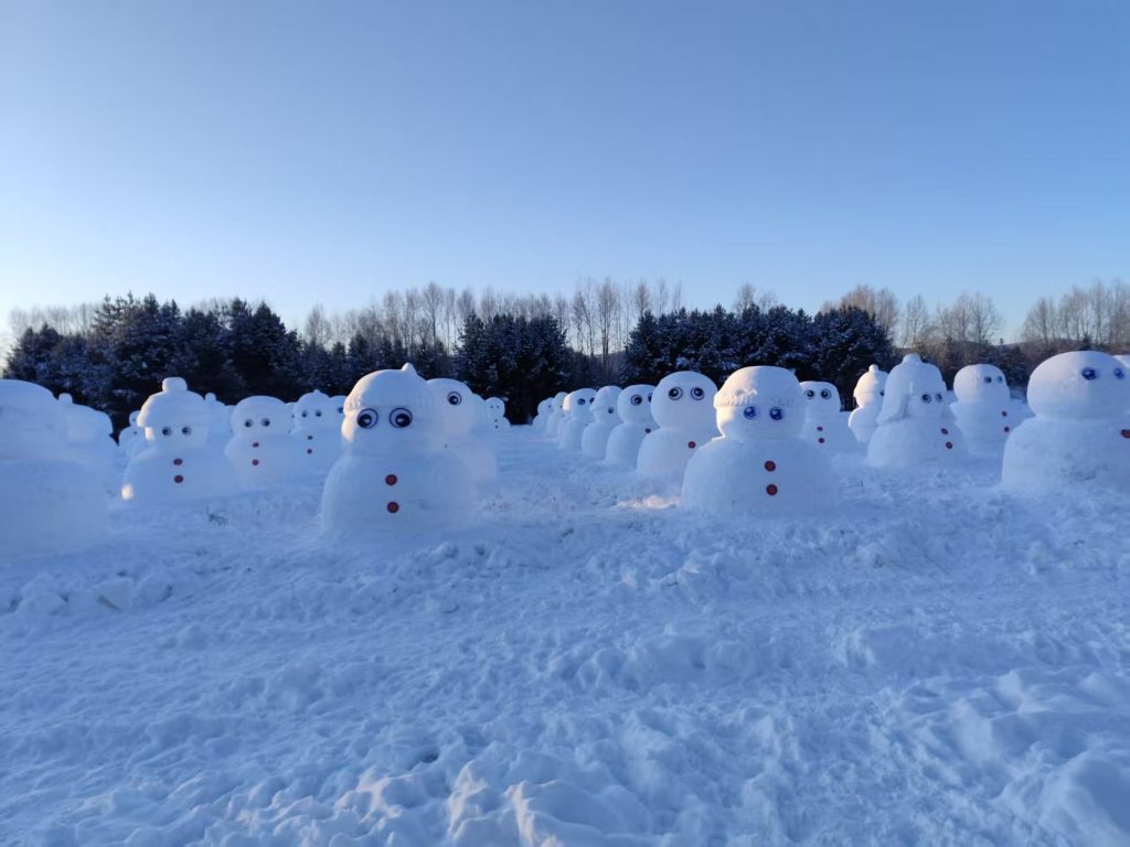 漠河的現場,白雪皚皚,露出一絲陽光